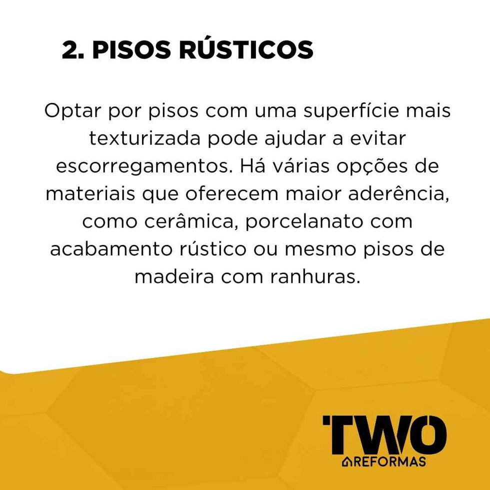 Escolha de materiais apropriados: Ao construir ou reformar espaços, escolha materiais de piso com superfícies antiderrapantes, como cerâmicas, azulejos ou pisos laminados com texturas que ofereçam mais segurança.