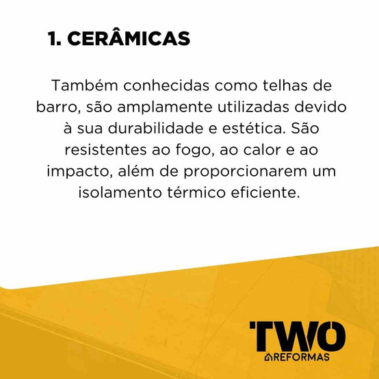 Telhas de cerâmica: também chamadas de telhas de barro, são populares devido à sua durabilidade e apelo estético. Feitas de argila queimada, as telhas de cerâmica são resistentes ao fogo, calor e impacto. Além disso, oferecem isolamento térmico e estão disponíveis em várias cores e formatos, permitindo diferentes estilos arquitetônicos.